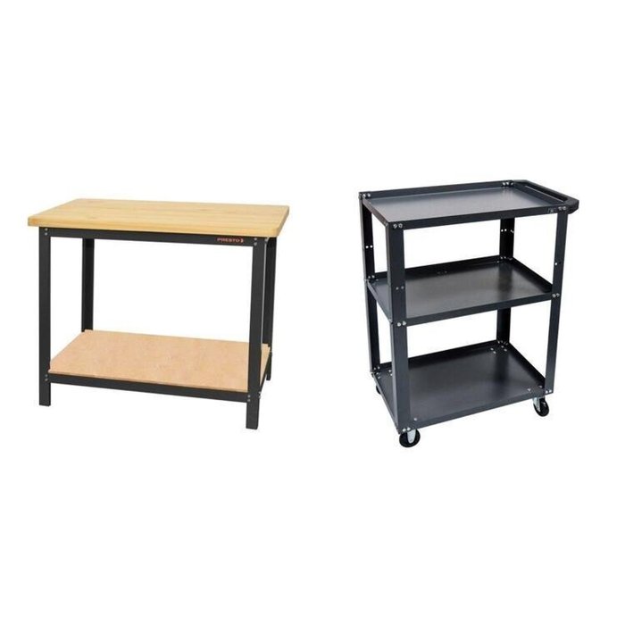 Conjunto 1 Bancada Profissional 110cm 1 Carro Aberto em Aço para Ferramentas Presto