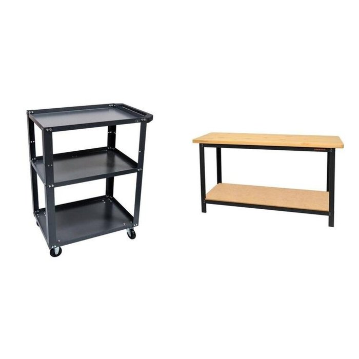 Conjunto 1 Bancada Profissional 150cm 1 Carro Aberto em Aço para Ferramentas Presto