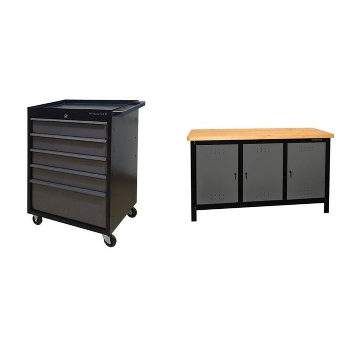 "Eleve o padrão da sua organização com nosso Conjunto Profissional de Organização. Incluindo um robusto Carro Profissional com gavetas e uma Bancada Profissional, este conjunto é a solução completa para suas necessidades de armazenamento e trabalho. O Carro oferece amplo espaço para suas ferramentas, com suas gavetas permitindo uma organização meticulosa e acesso rápido aos seus equipamentos. Enquanto isso, a Bancada proporciona uma superfície espaçosa e resistente para realizar suas tarefas com eficiência e conforto. Fabricados com a renomada qualidade da Presto, esses itens garantem durabilidade e desempenho excepcionais. Aumente sua produtividade e mantenha seu espaço de trabalho impecável."