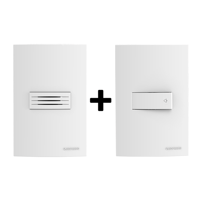 Conjunto 1 Interruptor Campainha + Cigarra Atria Branca Soprano Cj 1 Cigarra Eletr Bivolt 4x2 Br Atr