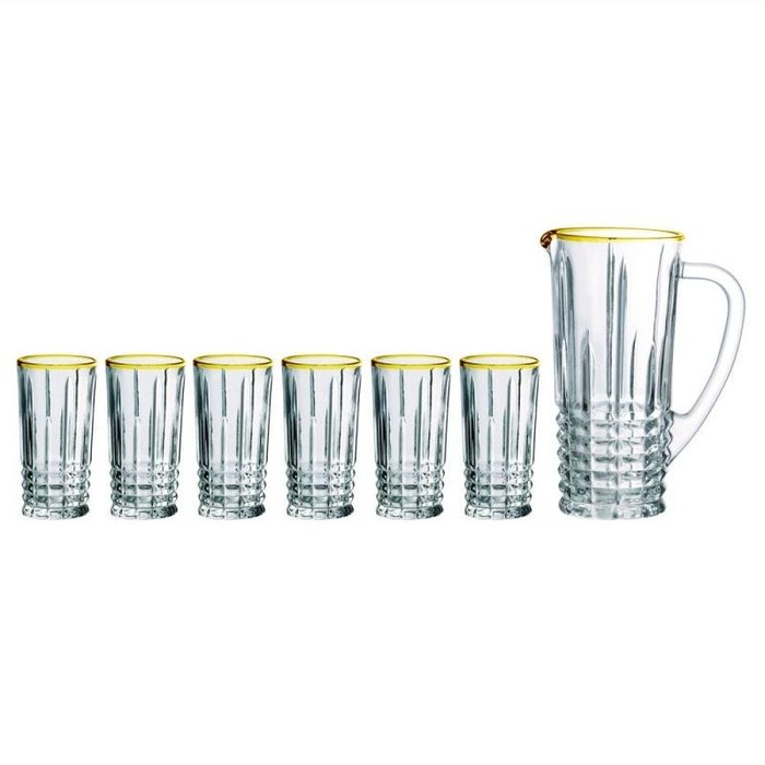 CONJUNTO 1 JARRA 900ML E 6 COPOS 219ML EM VIDRO COM FILETE DOURADO - INCASA