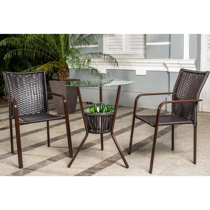 1 base de mesa, 1 tampo de vidro e 2 cadeiras