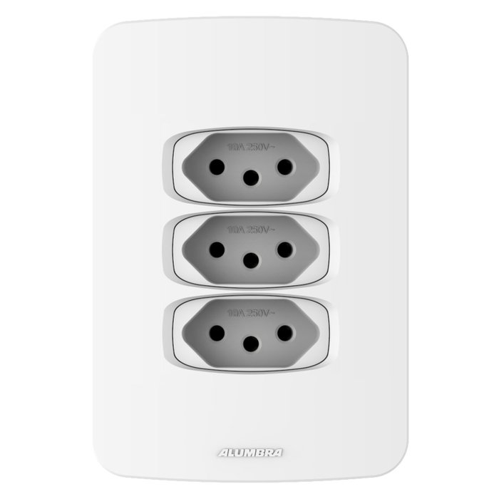 Conjunto 1 Placa 4x2 + 3 Tomadas 2 Pólos + Terra 10A Gracia Maxx Alumbra Branco