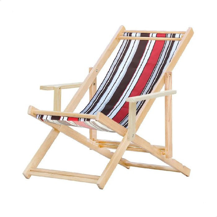 Conjunto 10 Espreguiçadeiras Preguiçosa Dobrável Madeira Maciça Natural com Tecido Listrado Vermelho
