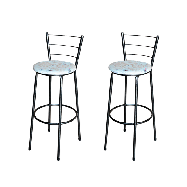 Conjunto 2 Banquetas Alta Preta Para Cozinha:Floral Areia Preto