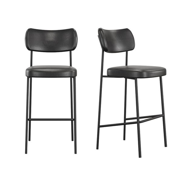 Conjunto 2 Banquetas Alta Stela Couríssimo Preto Base Metálica Preta - Vallisa Decor Preto