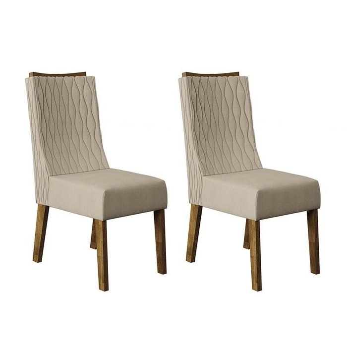 Conjunto 2 Cadeiras Amélia Tronco Ripado/suede Nude - Pr Móveis
