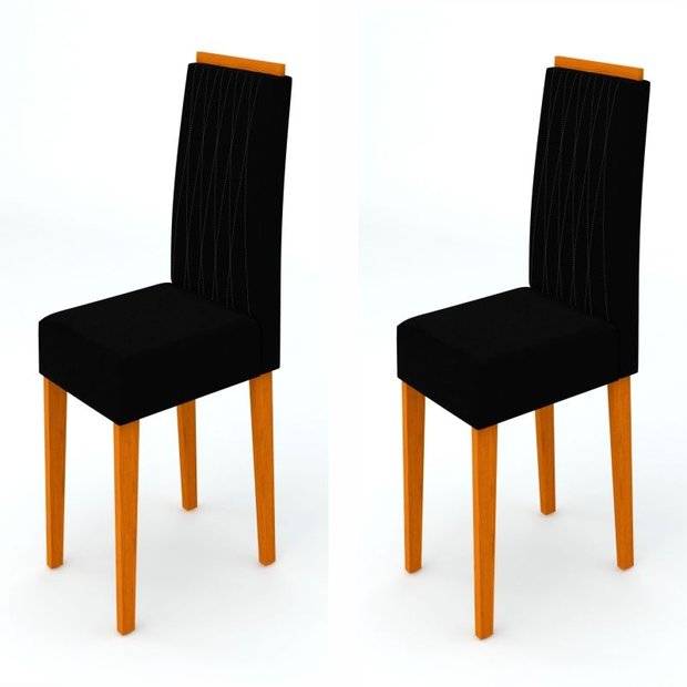 O conjunto de cadeiras Ana possui pés em MDF de 25mm para uma maior resistência, cantoneiras de travamento em Aço Carbono (Uma exclusividade New Ceval), assento e encosto com espuma de alta qualidade, bordado em relevo e acabamento em pintura PU e UV, suporta até 120 kg.