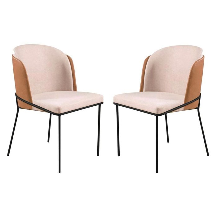 Conjunto 2 Cadeiras Aurora Linho Bege Couro Caramelo Metal Preto