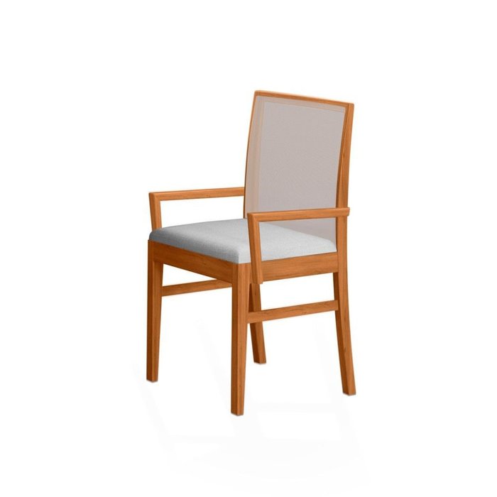 Conjunto 2 Cadeiras Áustria com Braços Castanho Claro Tela Cinza.