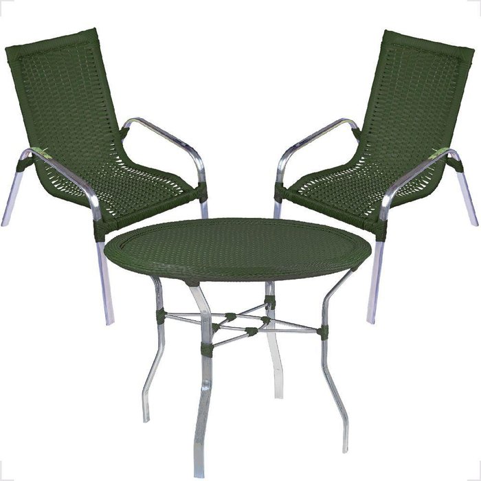 Conjunto 2 Cadeiras E Mesa Alta Alumínio Para área Externa Fortaleza Fibra Sintética Artesanal Cor:verde