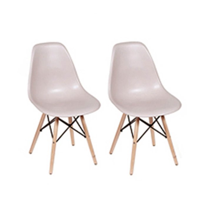 Conjunto 2 Cadeiras Eiffel Base Madeira - Bege Acinzentado Bege