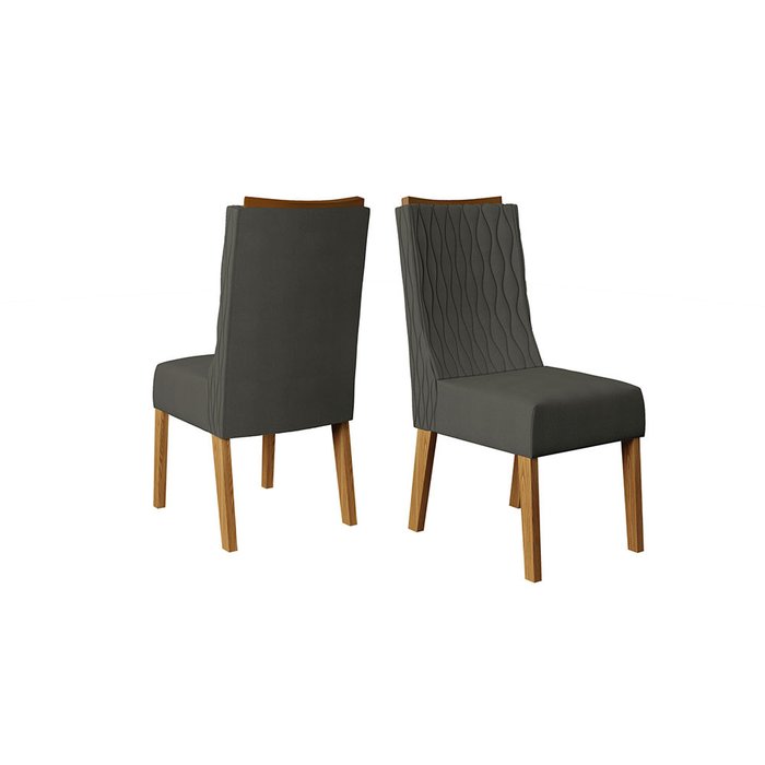 Conjunto 2 Cadeiras Estofadas Amélia Carvalho Europeu DJ Móveis Carvalho Europeu com Suede Cinza