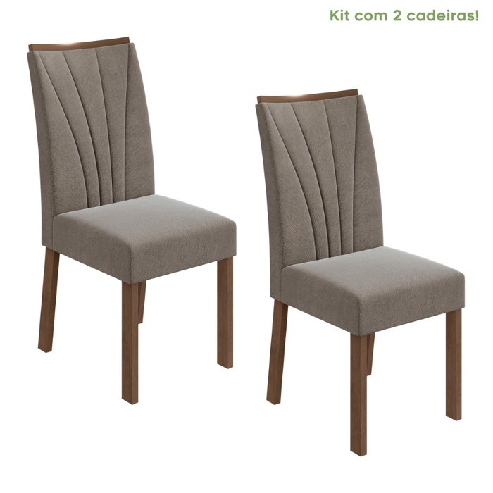 Conjunto 2 Cadeiras Estofadas Apogeu Móveis Lopas Imbuia Clean/Animale Bege