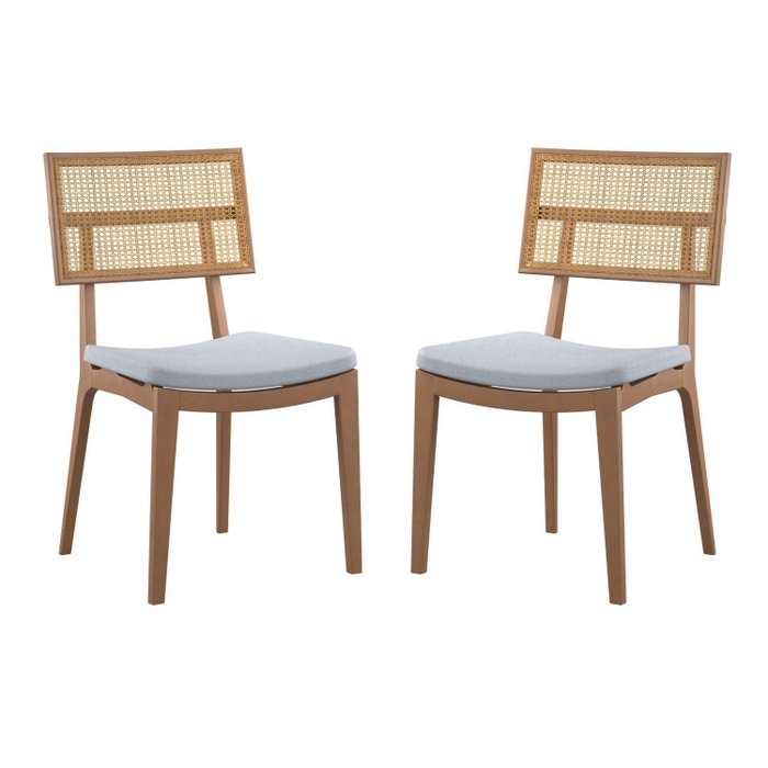 Conjunto 2 Cadeiras Madeira Maciça Esparta Encosto Tela Assento Linho Castanho/Cinza