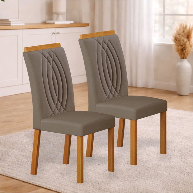 Conjunto 2 Cadeiras para Sala de Jantar Doha Freijó/Bege