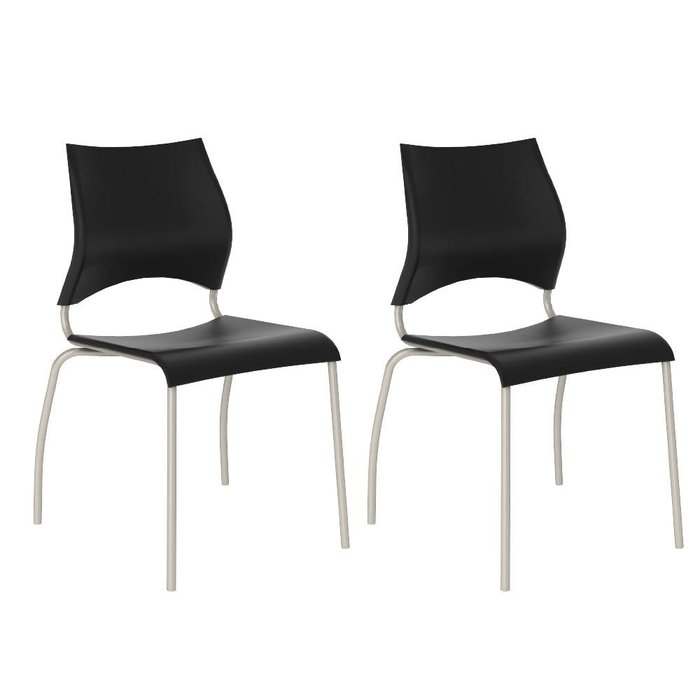 Conjunto 2 Cadeiras Pretas 357 Tubo Prata Carraro