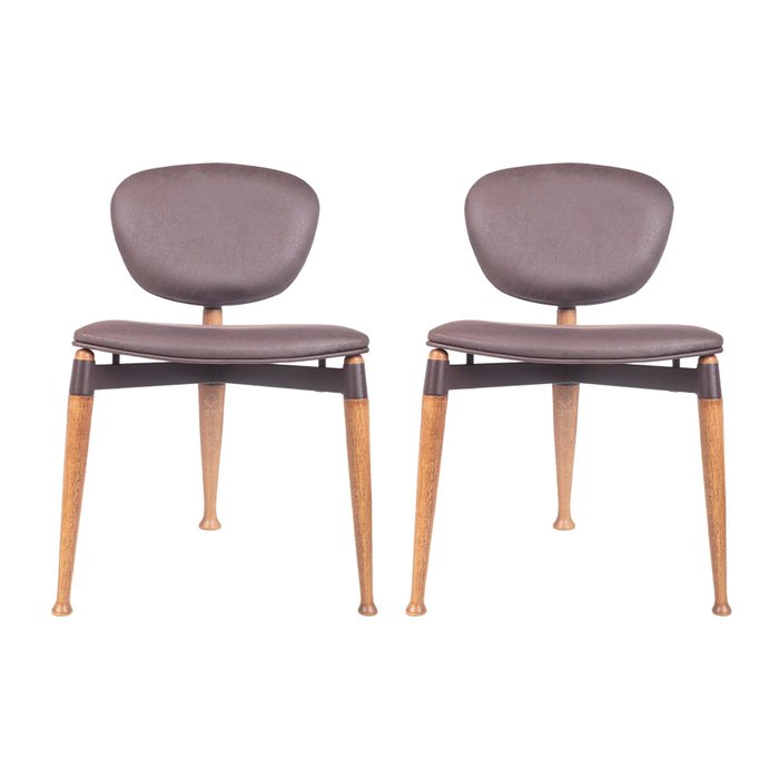 Conjunto 2 Cadeiras Tripé de Madeira Cor Imbuia Estofadas