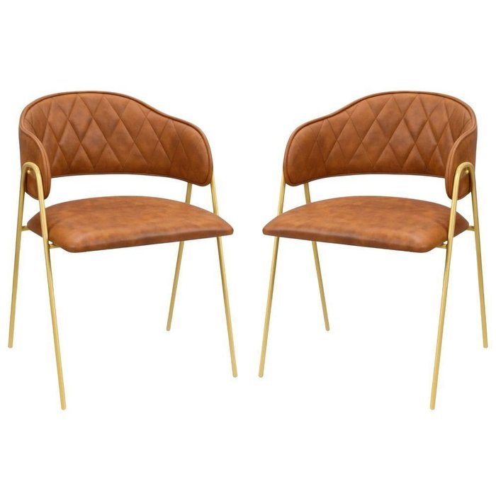Conjunto 2 Cadeiras Veneza Couro Caramelo Metal Dourado