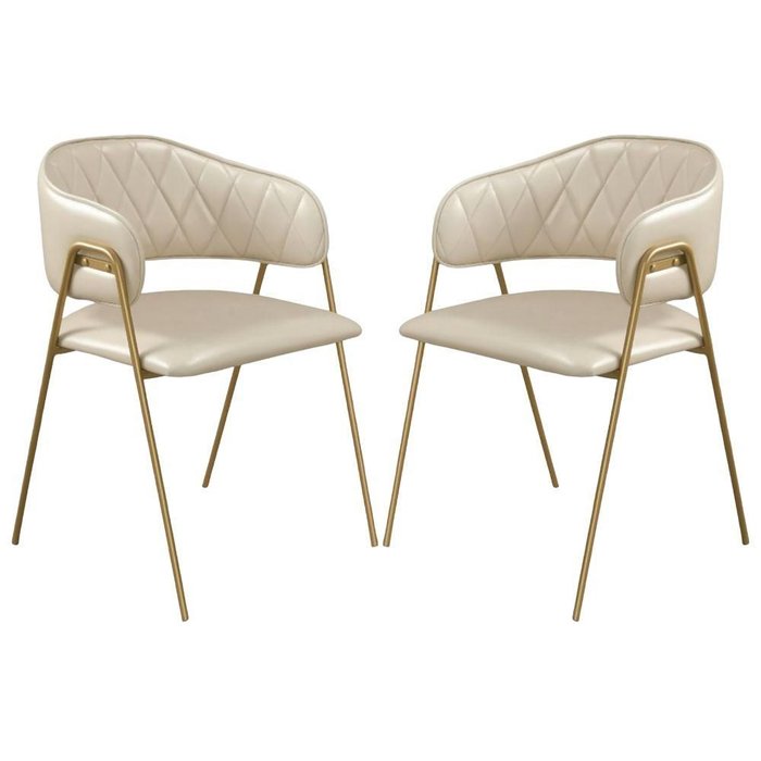 Conjunto 2 Cadeiras Veneza Couro Pérola Metal Dourado Bege
