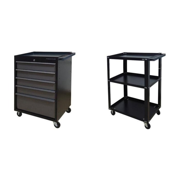 Conjunto 2 Carros de Ferramentas Profissional 5 Gavetas Presto Preto
