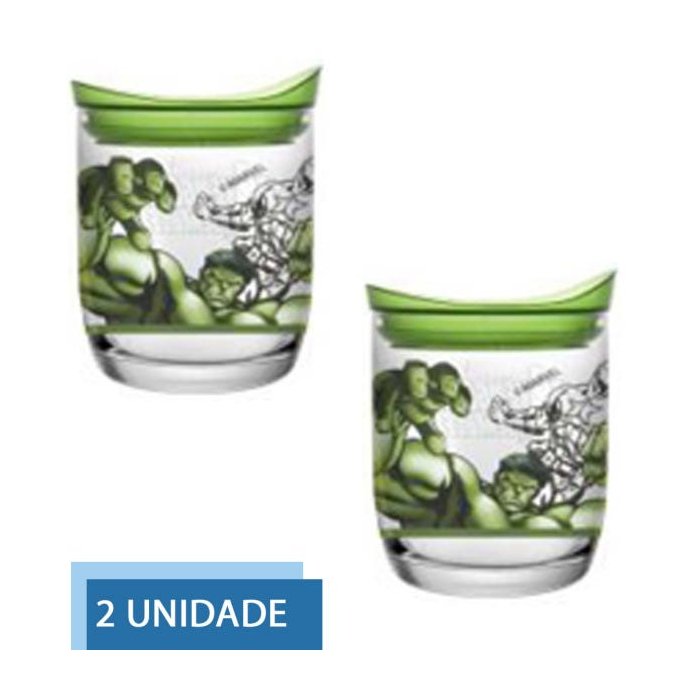 Conjunto 2 Copos Vidro Com Tampa Do Hulk Marvel Original