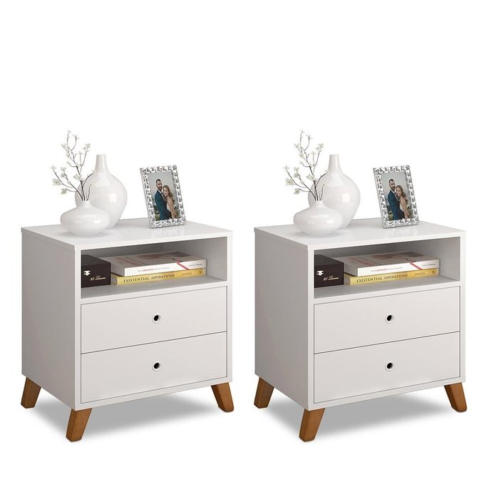 CONJUNTO 2 CRIADOS DE CABECEIRAS 2 GAVETAS E 1 NICHO BRANCO Branco