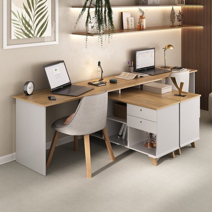 Conjunto 2 Escrivaninhas Gold Olmo/Branco