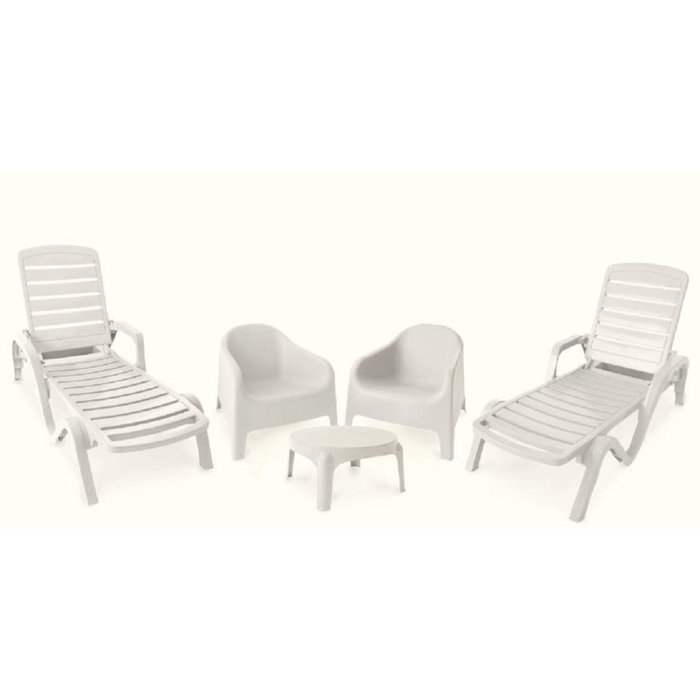Conjunto 2 Espreguiçadeiras + 2 Poltronas Skarpo + 1 Mesa Puket Branca