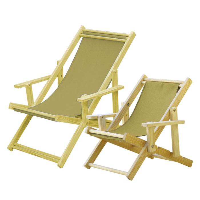Conjunto 2 Espreguiçadeiras Preguiçosa Dobrável Madeira Maciça Adulto e Infantil com Tecido - bege Natural