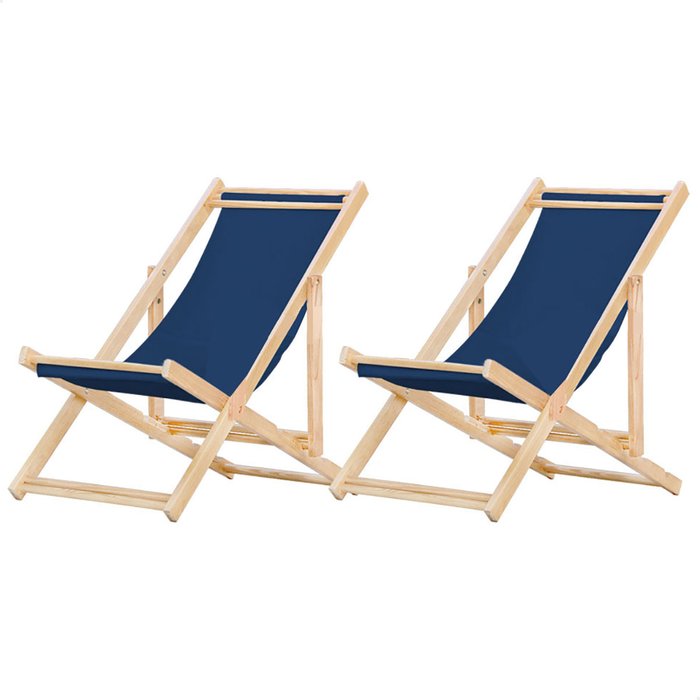 Conjunto 2 Espreguiçadeiras Preguiçosa Dobrável sem Braço Madeira Maciça com Tecido Colorido - Azul Azul