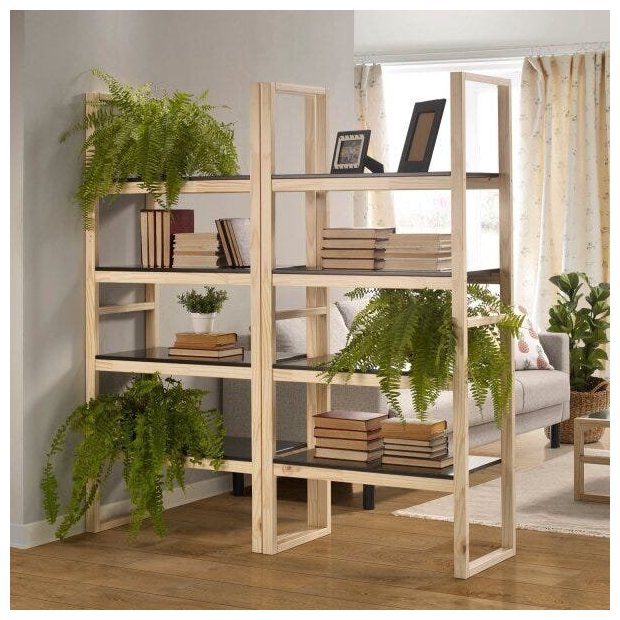 Conjunto 2 Estantes Livreiro Alta Madeira Maciça Guará CabeCasa MadeiraOriginals Preto/Natural