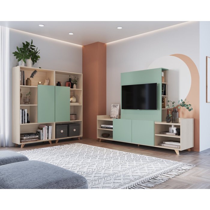 Conjunto 2 Estantes Multiuso 2 Portas e Nichos Nature/Verde