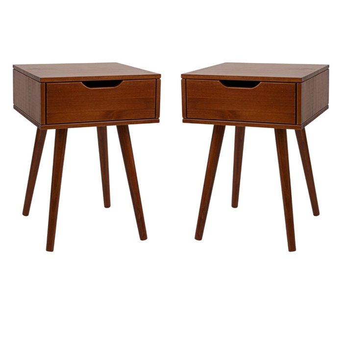 Conjunto 2 Mesas de Cabeceira 1 Gaveta Retrô Castanho