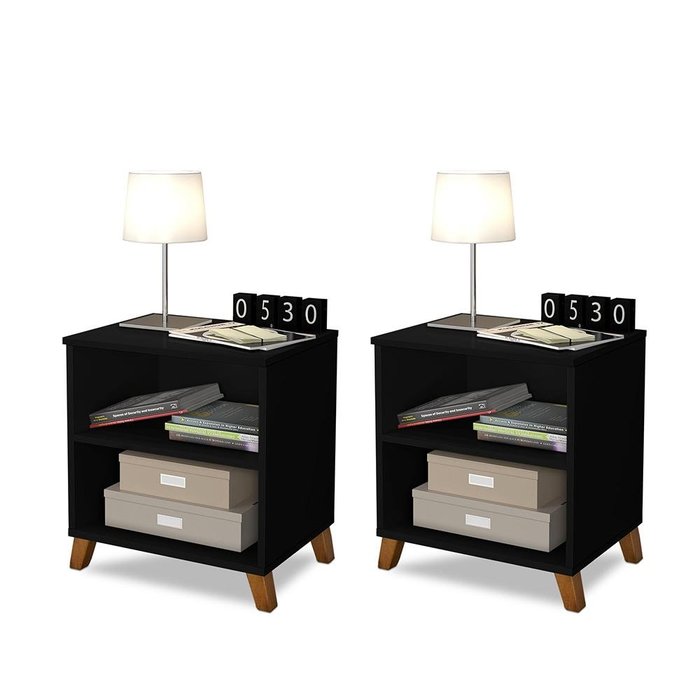 CONJUNTO 2 MESAS DE CABECEIRA 2 NICHOS PRETO Preto