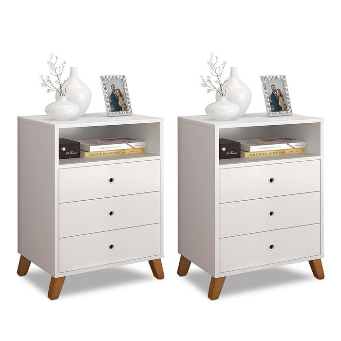 CONJUNTO 2 MESAS DE CABECEIRA 3 GAVETAS E 1 NICHO BRANCO Branco