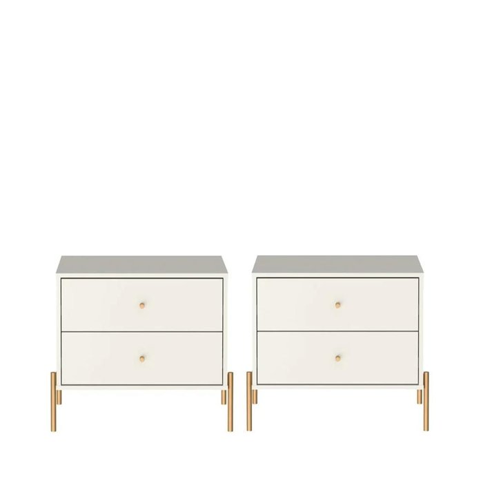 Conjunto 2 Mesas de Cabeceira com 2 Gavetas Jasper 64 Cm - Off White Fosco C/ Dourado