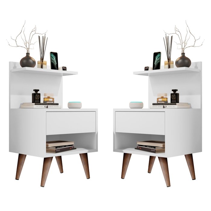 Conjunto 2 Mesas de Cabeceira Criado com Nicho Branco Branco
