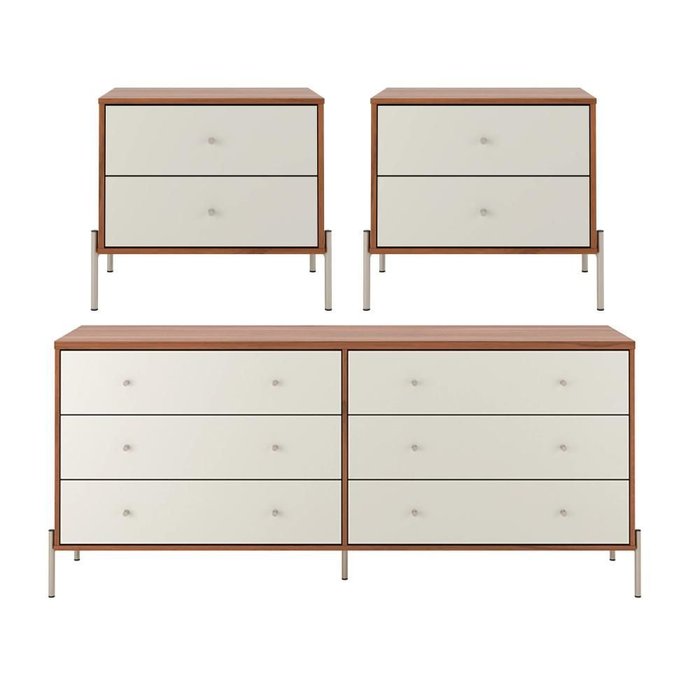 Especificações: Conjunto composto por 2 mesas de cabeceira e 1 cômoda.