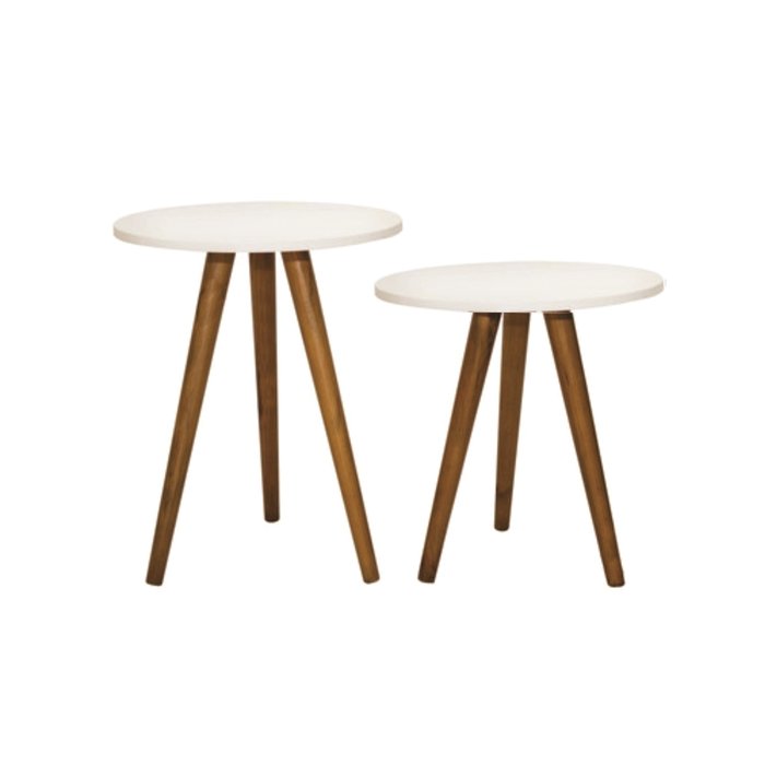 Conjunto 2 Mesas Redonda Branca Pé Palito Apoio De Sala Jáve