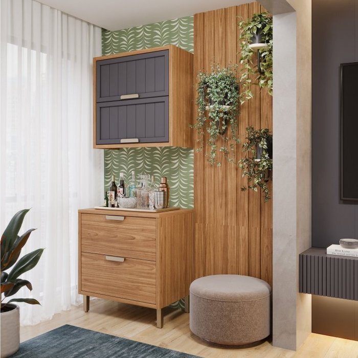 Conjunto 2 peças com Balcão e Aéreo para Varanda Gourmet Helen Yescasa Freijó/Titanium