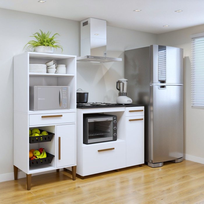 Transforme sua cozinha em um ambiente mais organizado! Nossa fruteira conta com 1 porta e 1 gaveta, oferecendo muito espaço para você guardar frutas, utensílios e pequenos itens. Com espaço ideal para encaixar seu fogão cooktop e nicho para micro-ondas, o balcão multiuso para cozinha otimiza o ambiente e mantém tudo ao seu alcance. Além da gaveta e porta espaçosas para organizar panelas, utensílios e mantimentos do dia a dia sem perder o charme, e ainda dá um Up na decoração para cozinha.