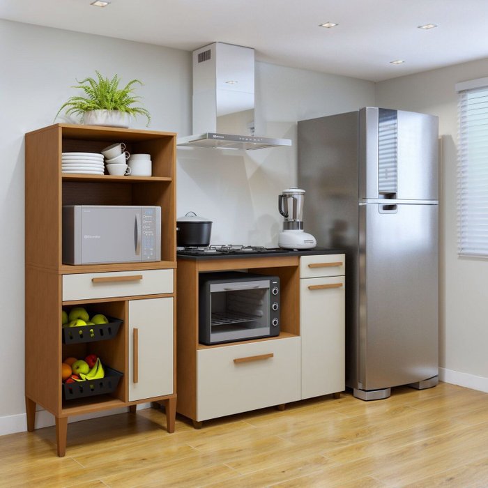 Transforme sua cozinha em um ambiente mais organizado! Nossa fruteira conta com 1 porta e 1 gaveta, oferecendo muito espaço para você guardar frutas, utensílios e pequenos itens. Com espaço ideal para encaixar seu fogão cooktop e nicho para micro-ondas, o balcão multiuso para cozinha otimiza o ambiente e mantém tudo ao seu alcance. Além da gaveta e porta espaçosas para organizar panelas, utensílios e mantimentos do dia a dia sem perder o charme, e ainda dá um Up na decoração para cozinha.
