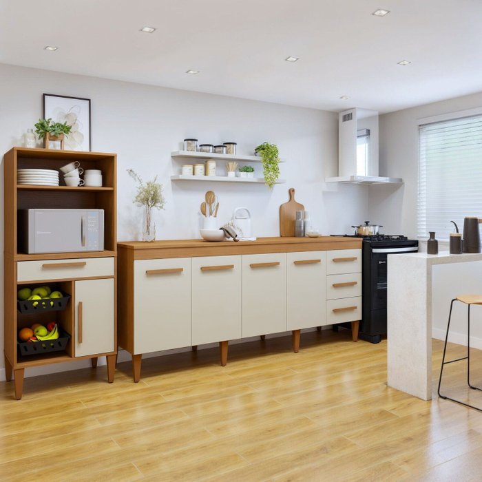 Conjunto 2 Peças Fruteira com Nicho e Balcão 4 Portas Cuiaba Nature/Off White