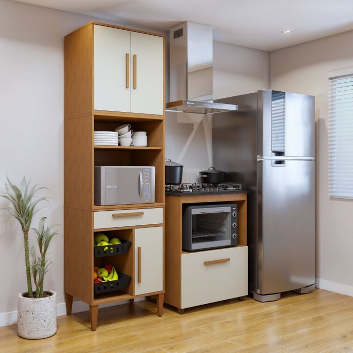 Conjunto 2 Peças Paneleiro com Fruteira e Balcão 5 Bocas João Pessoa Nature/Off White