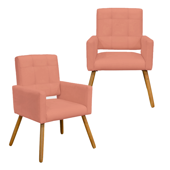 Conjunto 2 Poltronas Cadeira Estofada Decorativa Camila Suede Coral - Incasa Decor