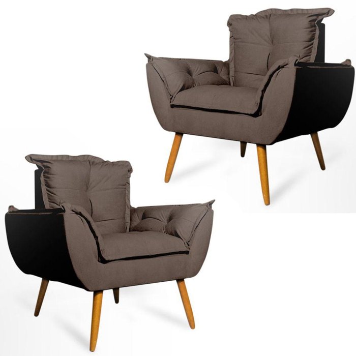 Conjunto 2 Poltronas Decorativa Opala Suede Marrom Rocha Móveis Marrom
