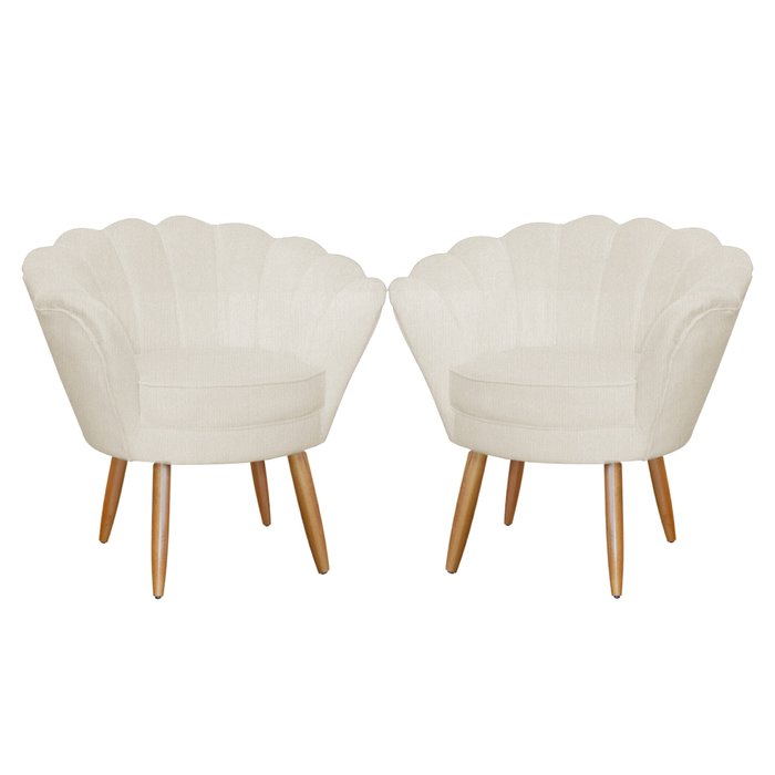 Conjunto 2 Poltronas Decorativa Pétala Pés Palito Bege Carolina Moveis