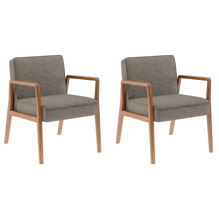 Conjunto 2 Poltronas Decorativas Lara tecido linho Cinza Madeira Nogueira Nobre Poltronas do Sul Cinza