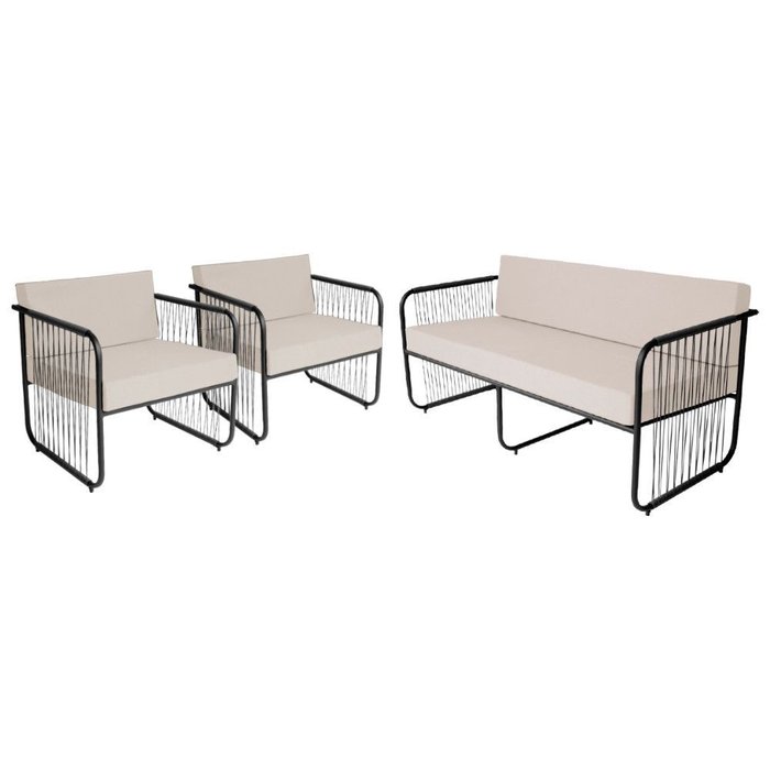 Conjunto 2 Poltronas e 1 Namoradeira para Sala de Estar Córdova em Aço Carbono e Fibra Sintética Ace Preto/Branco